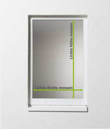 - Öffnen Sie das Fenster und messen Sie zuerst die lichten Maße – Höhe und Breite. Messen Sie hierzu den Abstand zwischen den Innenkanten des Fensterrahmens an der engsten Stelle.