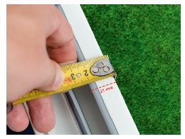 Messen Sie die Stärke des Blendrahmens inklusive der Gummidichtung.