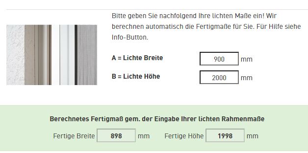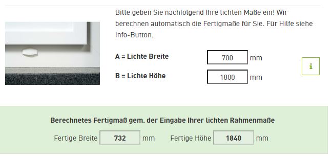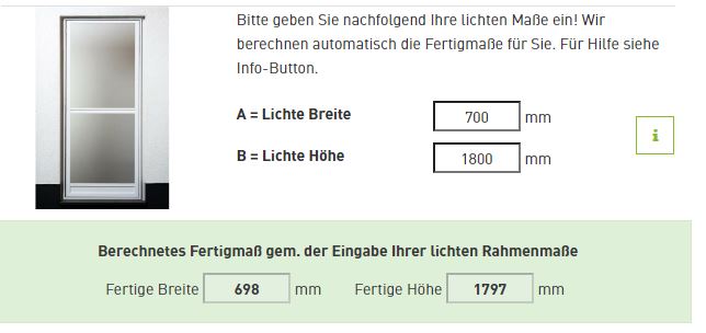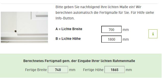 - Geben Sie nun alle Maße in den Konfigurator auf der jeweiligen Produktseite ein. Jetzt können Sie noch nützliche Zusatzfeatures auswählen. Und schon ist Ihre Wunsch-Drehtür fertig!