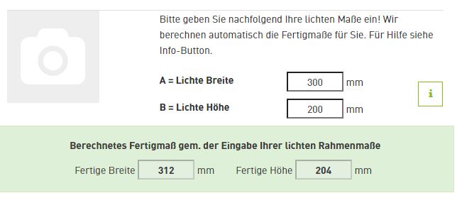 - Geben Sie nun alle Maße in den Konfigurator auf der jeweiligen Produktseite ein. Jetzt können Sie noch nützliche Zusatzfeatures auswählen. Und schon ist Ihr Wunsch-Spannrahmen fertig!